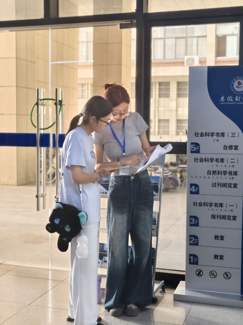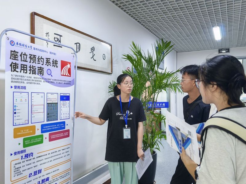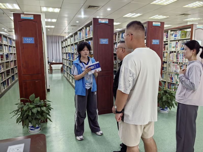 活动期间,义务馆员们分批引导新生及家长有序进馆参观。在东校馆,大家从一楼学习区域及“安·图·生”书坊出发,逐步了解各区域的功能。在二楼大厅,义务馆员们重点介绍了图书馆各类电子设备使用方法,包括图书查阅、借还书流程及数字资源的获取,也详尽讲解了各书库开放时间,通过详细演示和耐心讲解,帮助新生尽快熟悉和融入图书馆的学习环境。随后,馆员们带领新生及家长依次参观了自修室、各楼层书库,并最终抵达八楼学工委办公室。西校图书馆的参观活动也同步顺利开展,义务馆员们热情细致的介绍和周到的服务,赢得了新生及家长的广泛好评。